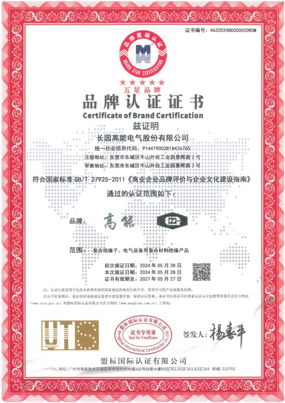 jcjc5500公海高能荣获五星品牌认证证书